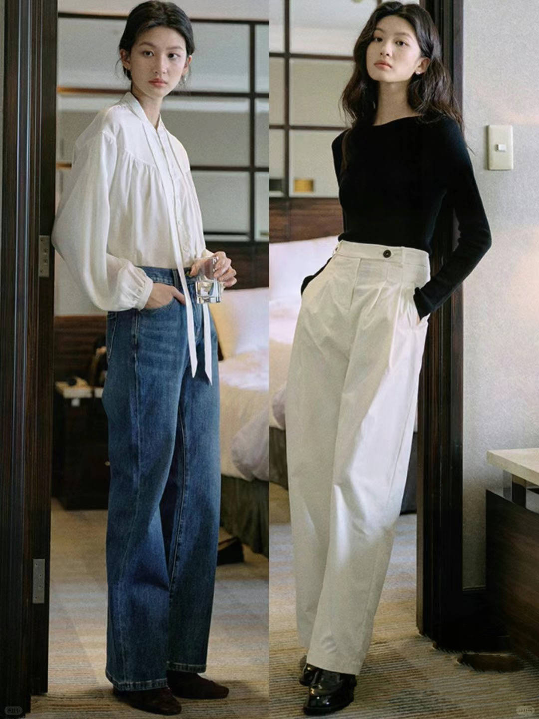 用黑色衬衫来搭配高腰的白色西装裤,这种简洁又时尚的穿搭、给人一种很高级的氛围。白色西装裤、简约清爽、包容性也更强,能更好的修饰身形。