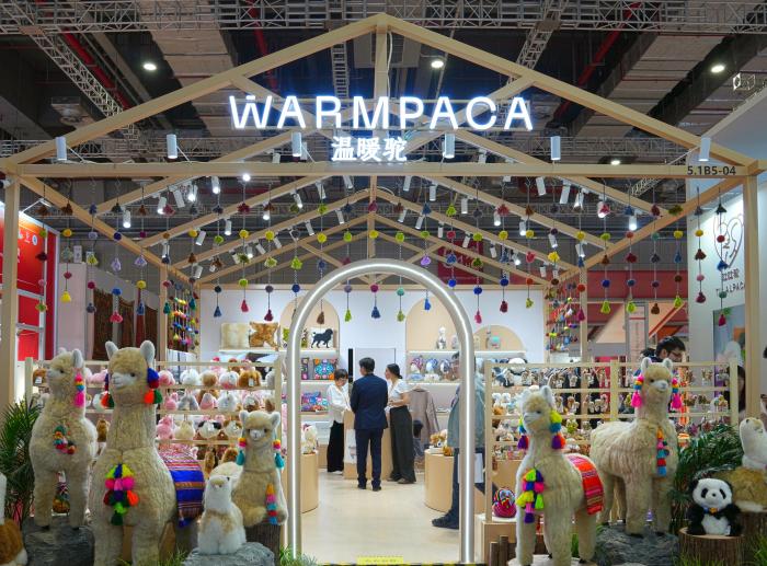 11月5日在消费品展区拍摄的温暖驼展台。温暖驼是进博会八届“全勤生”。新华社记者 刘颖 摄