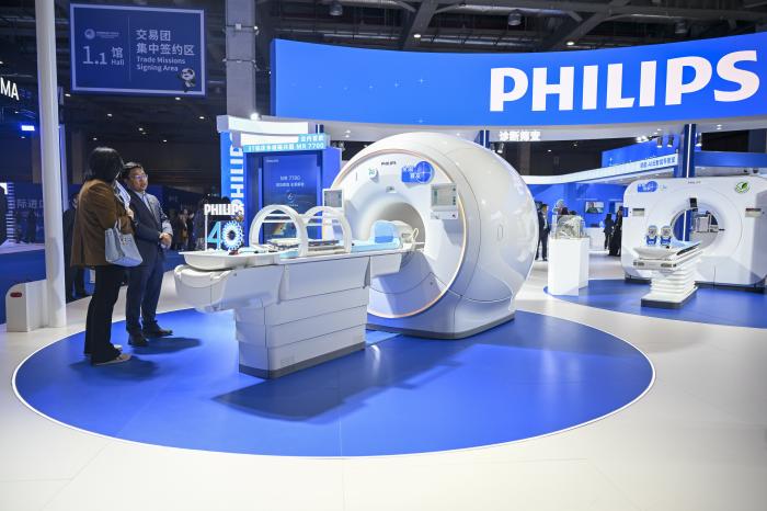 11月7日,观众在医疗器械及医药保健展区荷兰皇家飞利浦展台参观。荷兰皇家飞利浦是进博会八届“全勤生”。新华社记者 陈浩明 摄