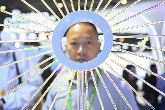 11月6日,观众在第八届进博会技术装备展区高通展台参观。高通是进博会八届“全勤生”。新华社记者 任鹏飞 摄