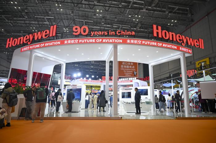 11月7日,观众在技术装备展区霍尼韦尔展台参观。霍尼韦尔是进博会八届“全勤生”。新华社记者 陈浩明 摄