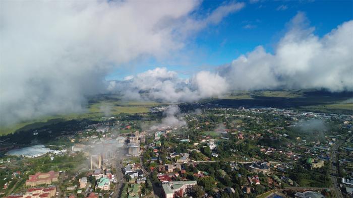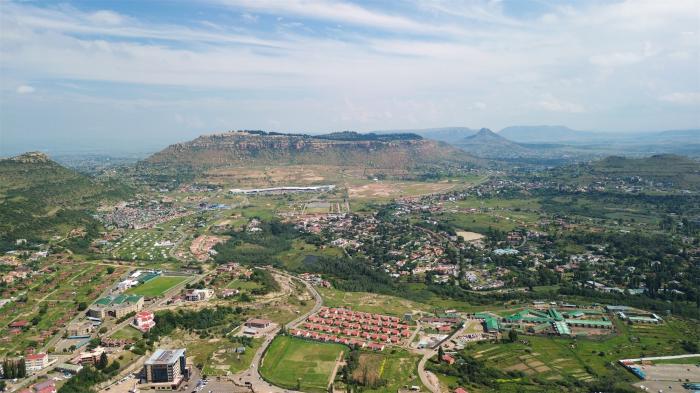 这是3月6日拍摄的莱索托首都马塞卢城市景观(无人机照片)。
