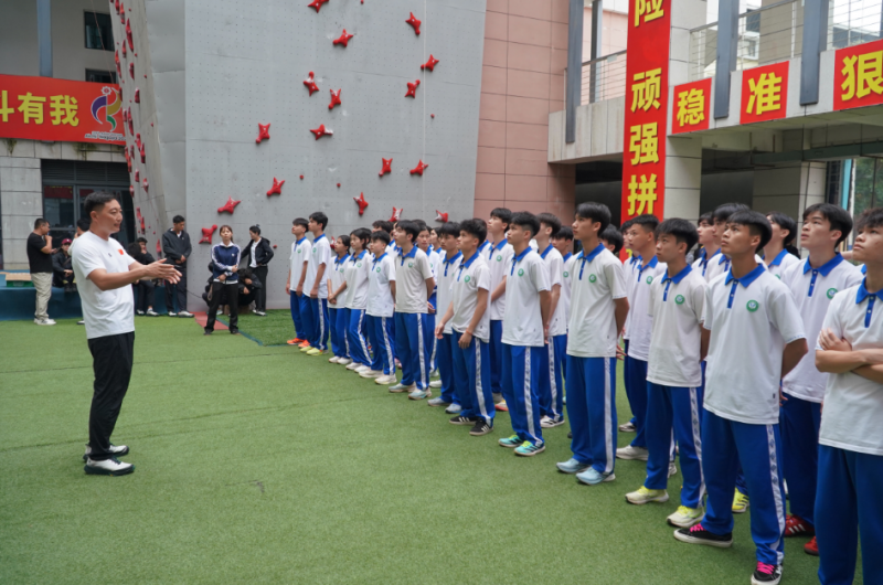 3月11日,“中华体育精神大讲堂”校园宣讲活动、“冠军体育课”运动员进校园活动来到海南省白沙黎族自治县民族中学。钟齐鑫、伍鹏、龙见国等国家攀岩队教练员、运动员、工作人员走进校园,用亲身经历讲述“攀登”故事,带领学生体验攀岩魅力,将中华体育精神融入一堂特殊的体育思政课。