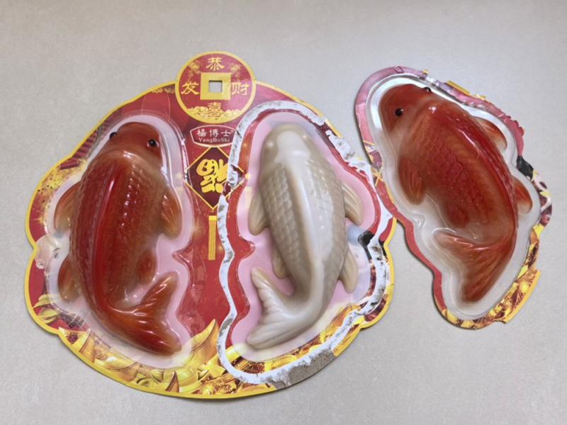 记者过年收到的一款红锦鲤年糕