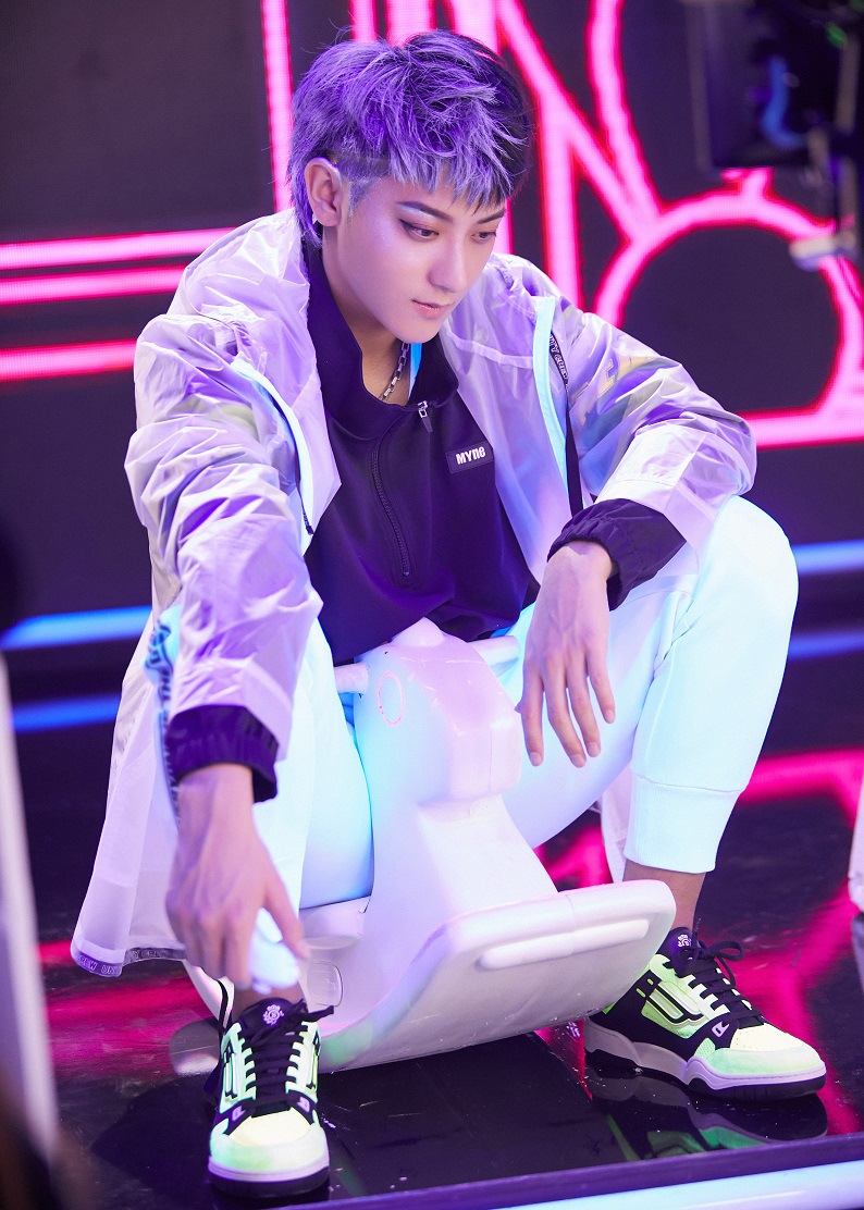MV中,黄子韬以深色系为主的五套搭配,在奇幻光影下彰显潮酷本色。第一套造型他身着豹纹大衣完美诠释不羁风范;转眼间第二套造型,黄子韬化身时尚先锋,将黑色高领运动衣与PVC质感的白色外套叠穿,营造出丰富的层次感,黑白双拼色发型耀眼吸睛,整套look的个性与潮流被展现到极致。