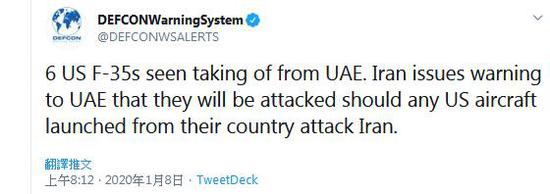 6架美F35从阿联酋起飞 伊朗警告若遭攻击将打阿联酋