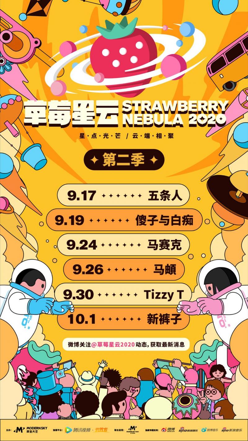“草莓星云”第二季艺人阵容于11日公布,新裤子、五条人、马頔等乐队和音乐人将登上“草莓星云”的舞台。