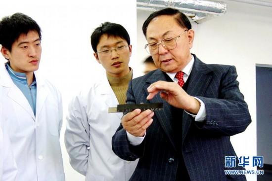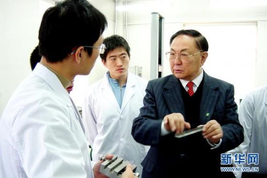 中国工程院院士、哈尔滨工业大学教授杜善义(右)为学生讲解复合材料(资料照片)