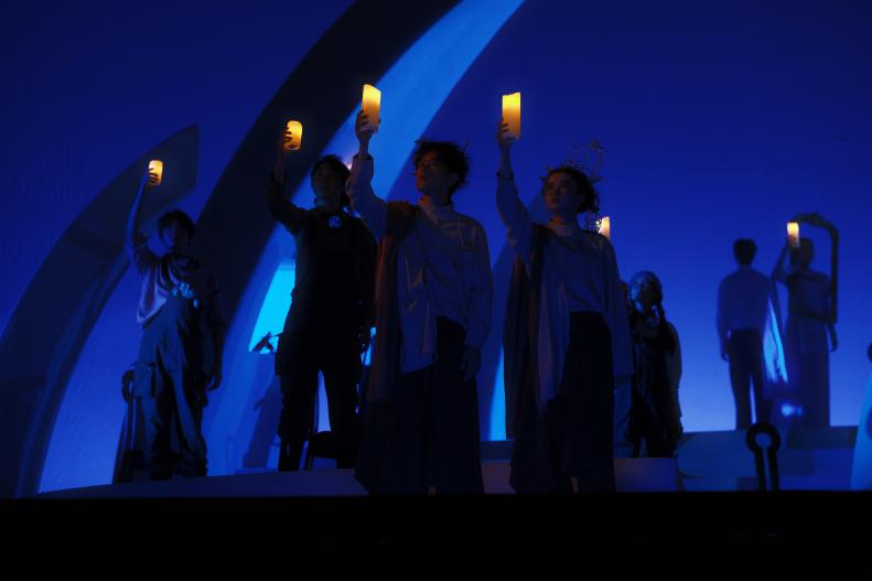 舞台呈现没有繁复布景,以光、影与身体构建象征性的舞台空间。灯光成为情绪的延展,音乐成为动作的驱动,演员的身体成为意义发生的场域。这种创作方式源于奥地利诗性剧场传统,同时也为中国高校舞台体系带来新的探索——中传音乐剧专业在本次创排中系统性引入“本体叙事”理念,被业内视为值得关注的教学创新尝试。