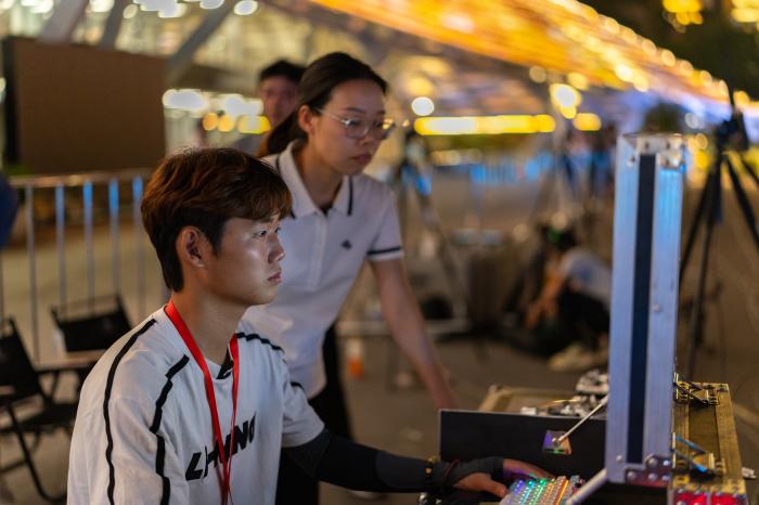 2025年10月24日,在合肥乐聚机器人技术有限公司,机器人应用开发工程师张鸿伟在实验室内调试机器人。新华社记者 周牧 摄