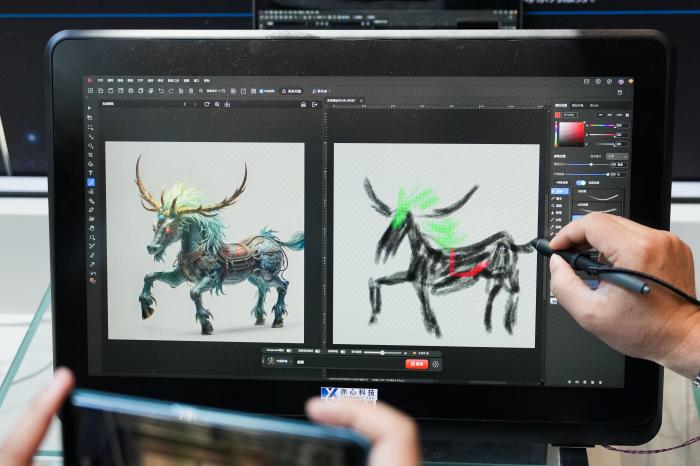 2025年6月20日,在北京石景山区中关村科幻产业创新中心,工作人员展示悟空图像软件的AIGC功能。新华社记者 郑焕松 摄