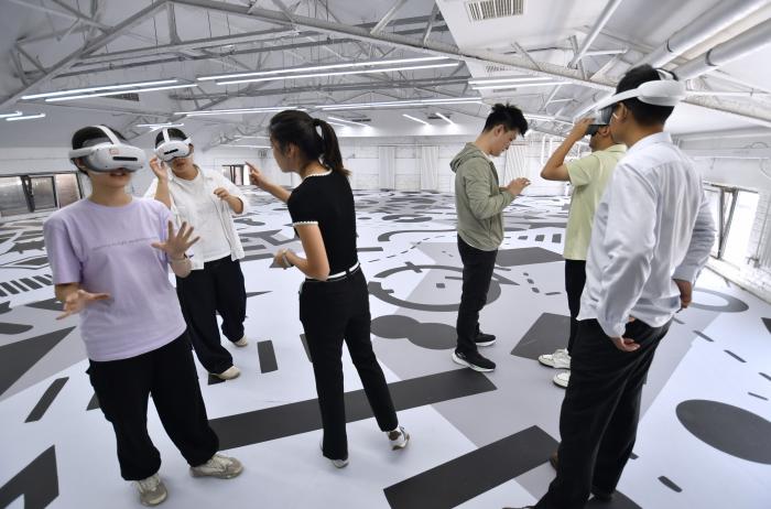 2025年9月19日,在位于北京市丰台区的纪家庙双创产业园,一家文创企业的青年人在测试VR产品。新华社记者 李欣 摄