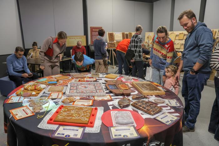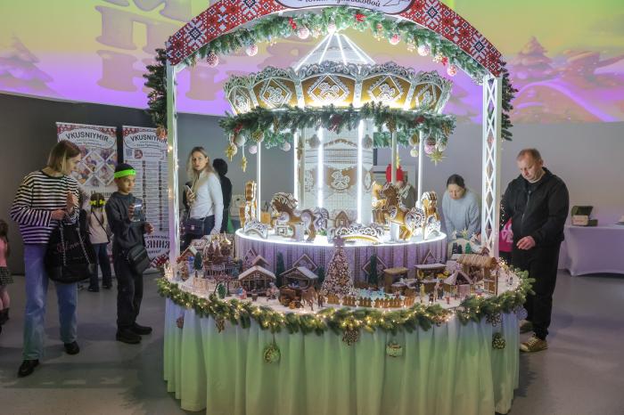 11月30日,人们在俄罗斯圣彼得堡参观姜饼作品。