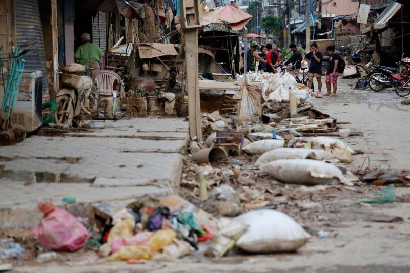 这是11月28日在泰国宋卡府合艾市拍摄的洪灾侵袭后的街道。新华社发