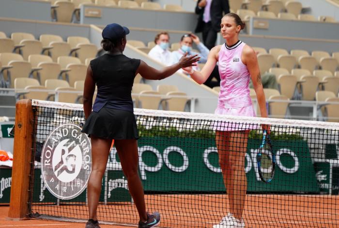 6月3日,普利斯科娃(右)与斯蒂芬斯在赛后相互致意。