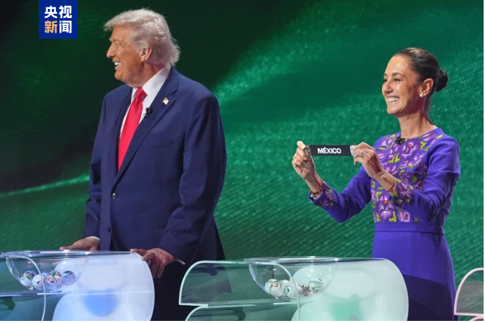 央视记者当地时间12月5日获悉,当天,美国总统特朗普在世界杯抽签仪式上首次与墨西哥总统辛鲍姆会面。