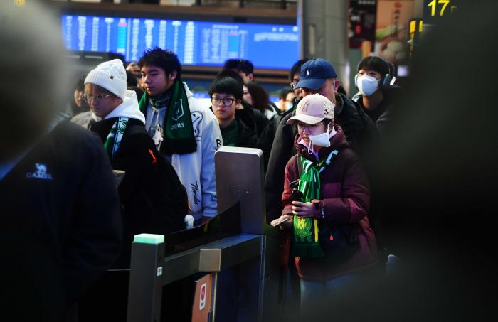 球迷们正在进站。
