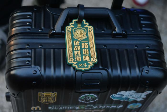 球迷行李上的国安队标识。