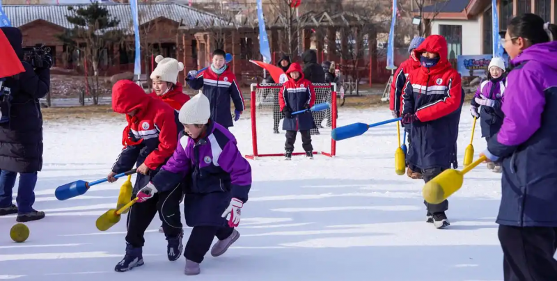 投掷冰壶、飞盘投篮、雪上足球、滑雪体验……雪假第一天,吉林市纳美山谷旅游度假区人头攒动,滑雪板的摩擦声、孩子们的欢笑声交织回荡。