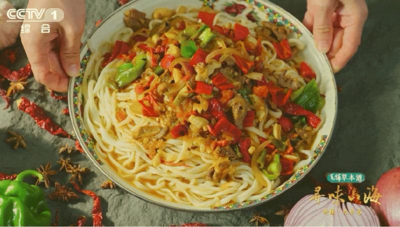 另一道羊肉盖浇面,则显融合之妙。羊肉切小块,在滚烫羊油中快速滑散,加入新疆特产番茄,融化成鲜红酱汁,再汇入洋葱、辣椒,浇入慢炖的羊骨高汤。浓香的浇头与弹滑的面条相遇,便是一碗融汇鲜、酸、甜的戈壁盛宴。