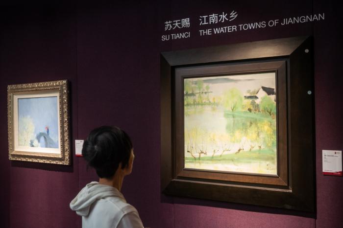 预展展出第二代中国油画本土化先驱的代表作,包括常玉《戴玉戒的女士》、林风眠《美丽的仕女》、苏天赐《江南水乡》等作品。