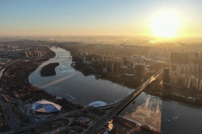 假若有一只鸟掠过辽沈上空,它将看见:浑河如玉带,蒲河似银线,辽河若苍龙;棋盘山青黛起伏,七星山绵延伏脉,巴尔虎山雄峙守望——三山为骨,三水为脉,山水相拥,勾勒出沈阳独有的城市轮廓。这是2025年1月1日拍摄的浑河两岸沈阳城市景色。新华社记者 潘昱龙 摄