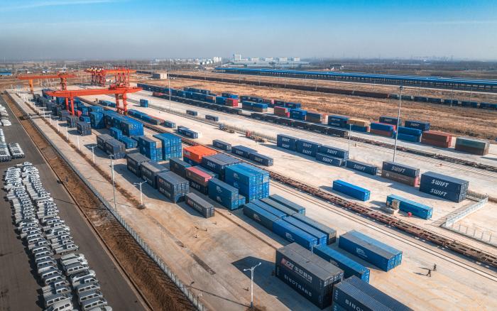 这是2025年10月30日拍摄的中欧班列(沈阳)集结中心(无人机照片)。
