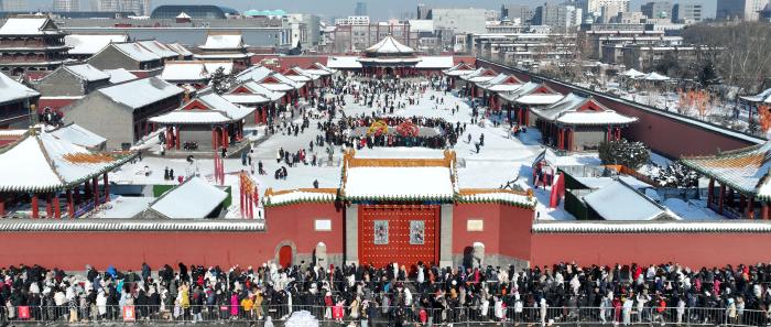 2025年1月31日,游客在沈阳故宫参观(无人机照片)。