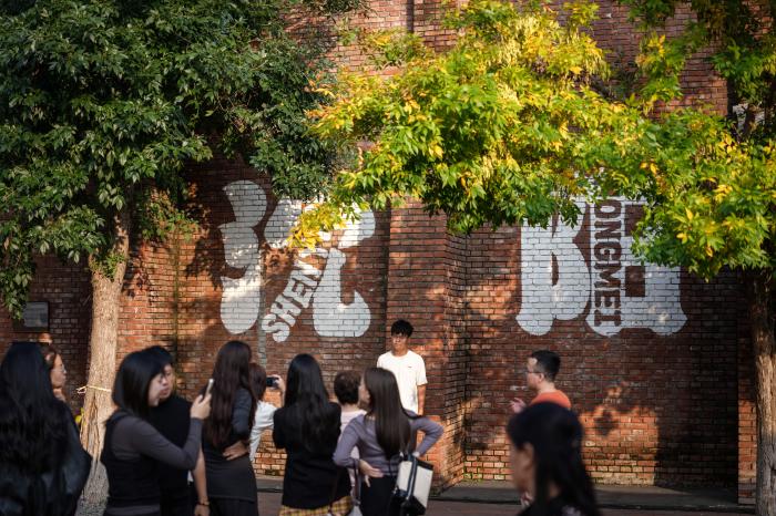 2025年10月1日,游客在沈阳红梅文创园游览。