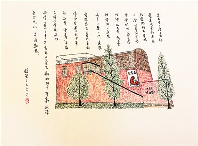 老书虫歇业,我刚好在外地出差,没机会最后再去坐坐。它彻底关门歇业后,有一天我路过,停在路边画了一张老书虫那独特的褐红色小楼,以为纪念。