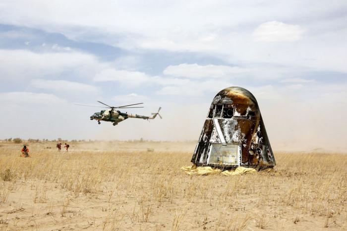 新一代载人飞船试验船返回舱返回东风着陆场,酒泉卫星发射中心空中搜救队员抵达现场进行通信设备架设(5月8日摄)。随着长征四号丙运载火箭托举着遥感三十三号卫星于27日夜升空,酒泉卫星发射中心顺利完成全年发射任务,积极备战2021年中国空间站任务。