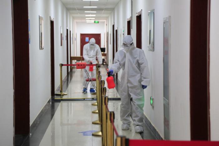 疫情期间,酒泉卫星发射中心防疫站人员对厂房进行消毒(4月9日摄)。平均年龄26岁的测控团队、29岁的指挥显示组组长曾显华、27岁的雷达遥测设备组组长宋福印……近年来,一大批年轻科技人员走上一线关键岗位,直接参与火箭卫星的测发、测控、通信和技术总体工作。9月21日中午,这个中心成功将海洋二号C卫星送入预定轨道,年轻的科技人员用实际行动发出青春宣言:“航天战旗交给我,请放心!”