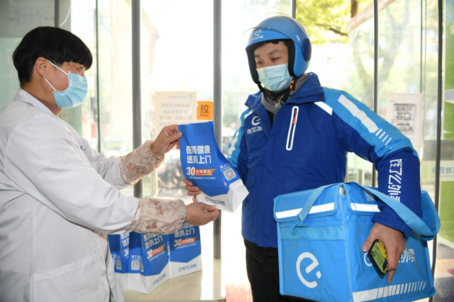 药品将由饿了么或快递配送到家