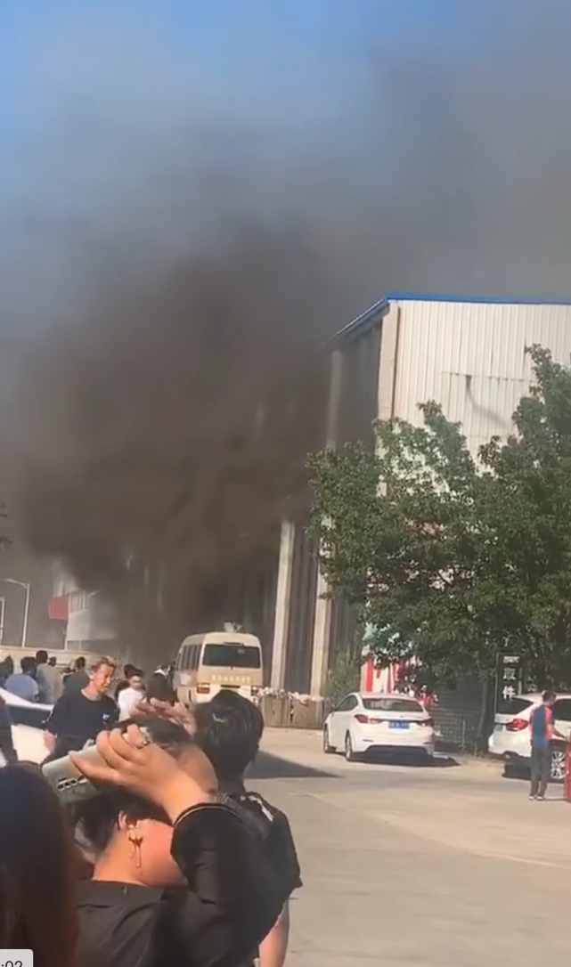现场视频显示,一栋三层高仓库顶层内冒出浓浓黑烟,突然有多人从高处连续跳下,北青-北京头条记者粗略计算,2秒内至少有6人从高处跳下。据目击者介绍,多人跳下的地方是一家名叫“李氏婚纱”的婚纱摄影基地。