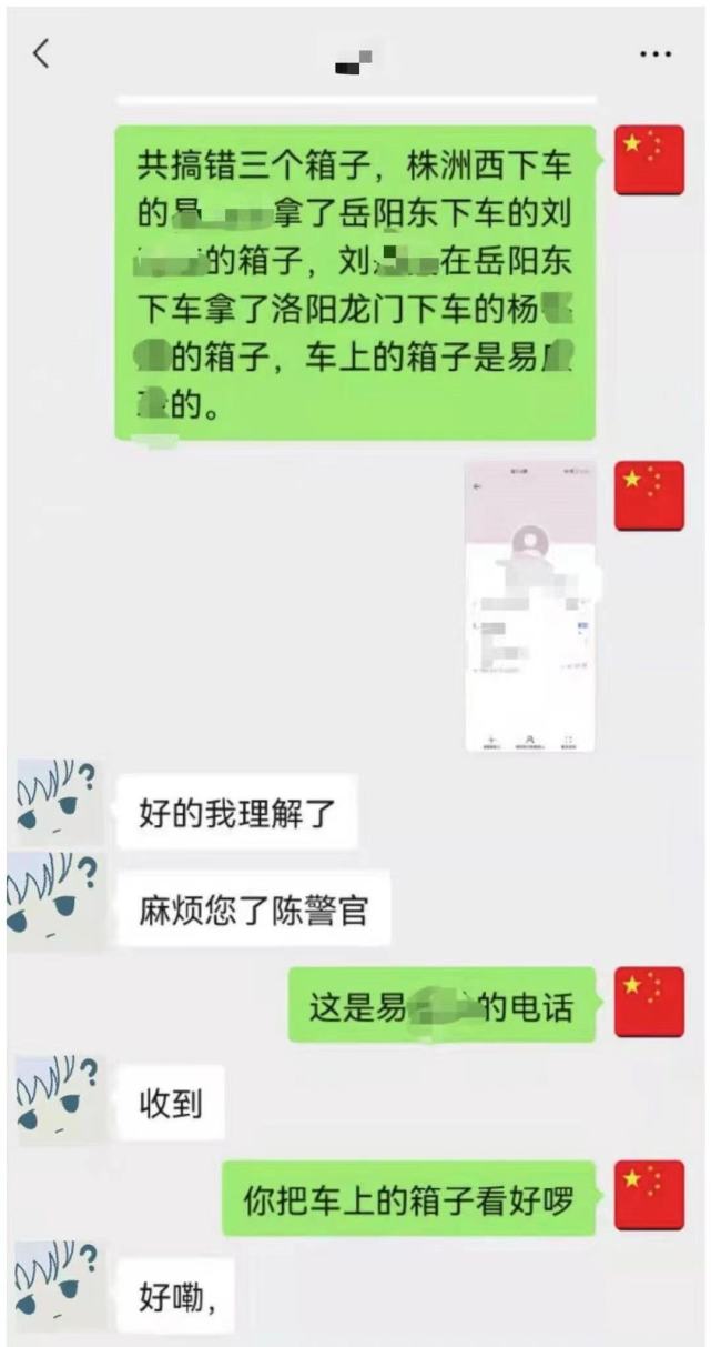 经核实,车上这个行李箱并不是刘女士的。民警判断可能还有一名旅客拿错了行李箱,导致“连锁乌龙”。通过12306联动,一名在株洲西站下车旅客易女士在不久前报称错拿行李箱,民警联系确定是刘女士的行李箱。通过工作,民警及时将行李箱各归原主。