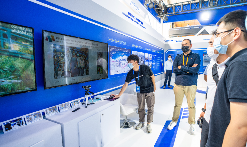 置身古香古色的中国画中是怎样的体验?站在镜头前,屏幕像“魔镜”一般带你穿越进入《清明上河图》,点击拍摄打印,便可获得量身定制的艺术照。超高清实验室运用AI集成算法推出的“风格迁移”趣味项目,吸引现场众多参观者的围观体验。