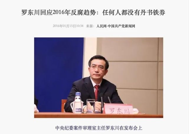 比如,2016年1月,罗东川曾出现在国新办的一场新闻发布会上,解读十八届中央纪委第六次全会精神。