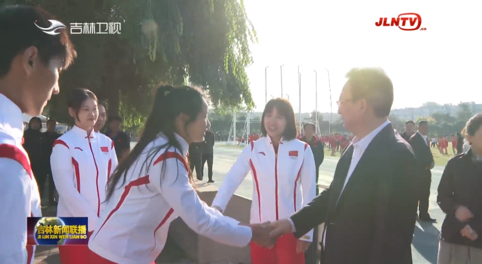 景俊海与田径男子4×100米接力冠军陈佳鹏,场地自行车女子团体竞速赛冠军、争先赛亚军苑丽颖,女子50米步枪三姿团体赛冠军、50米步枪三姿个人赛亚军张琼月等吉林省运动员代表一一握手。