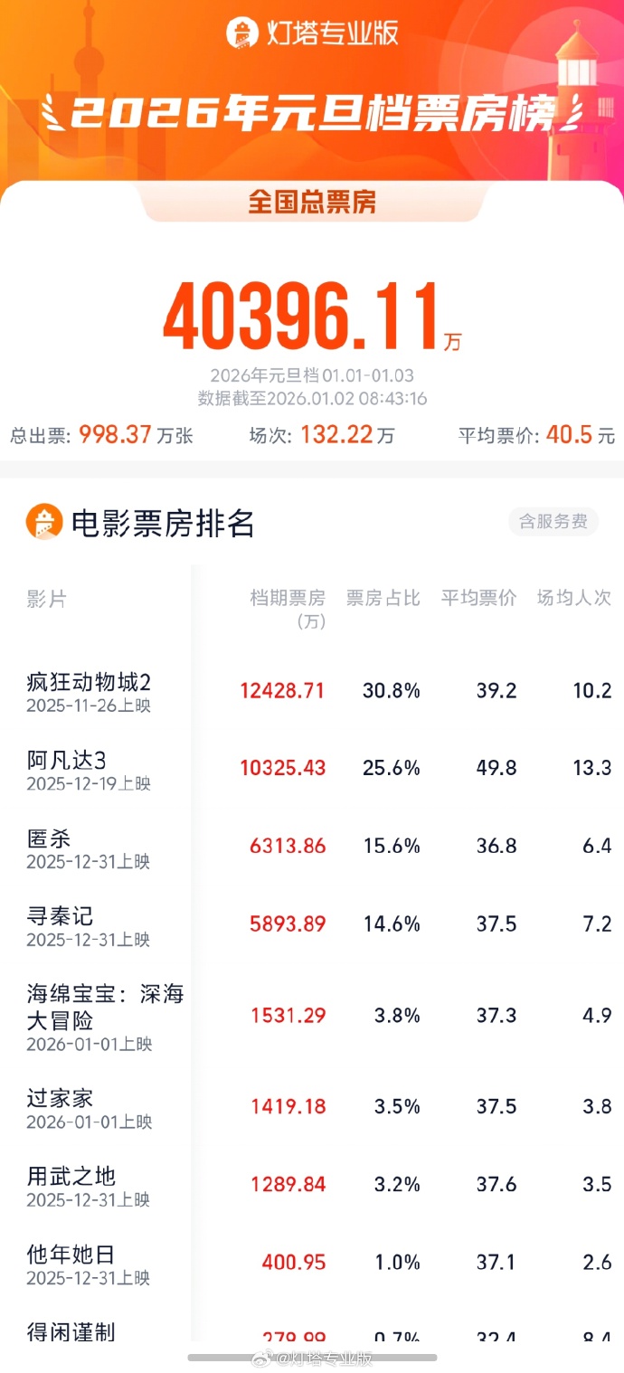 2026元旦档票房已破4亿,票房排名前三的是它们