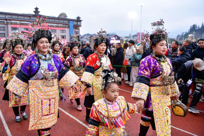 1月2日,苗族群众参加第四届贵州“村超”开幕式巡游。