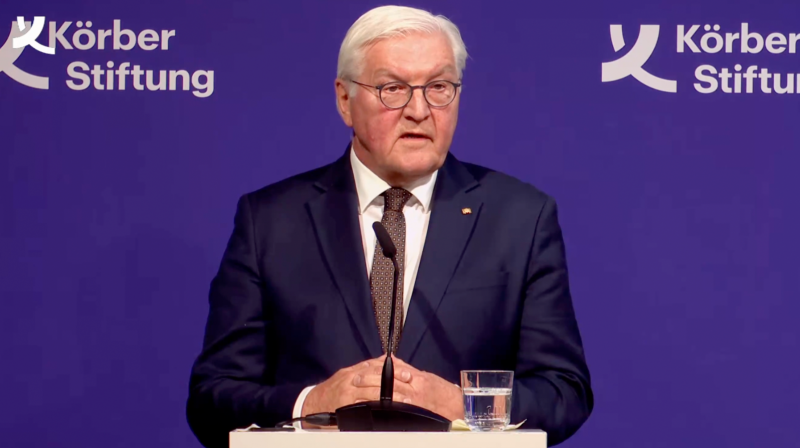 施泰因迈尔称,当今世界正面临“双重划时代断裂”。首先是俄乌冲突,这摧毁了欧洲安全架构。“其次,作为德国和欧洲最重要伙伴的美国,也在违背自身的价值观”。
