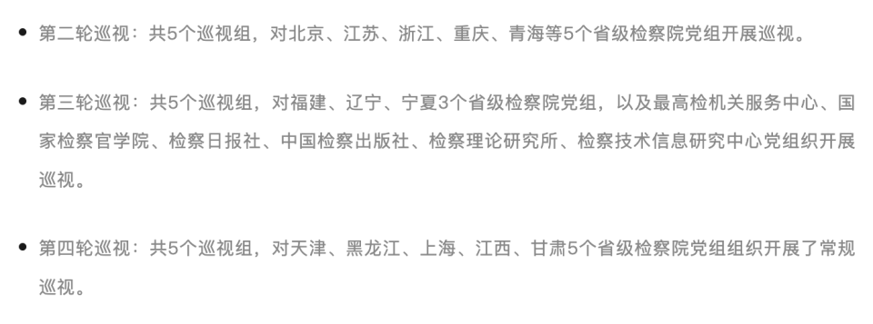 之后,最高检又开展了第二轮、第三轮、第四轮巡视,时间分别是在2024年4月至6月、2024年10月至12月、2025年4月至6月。