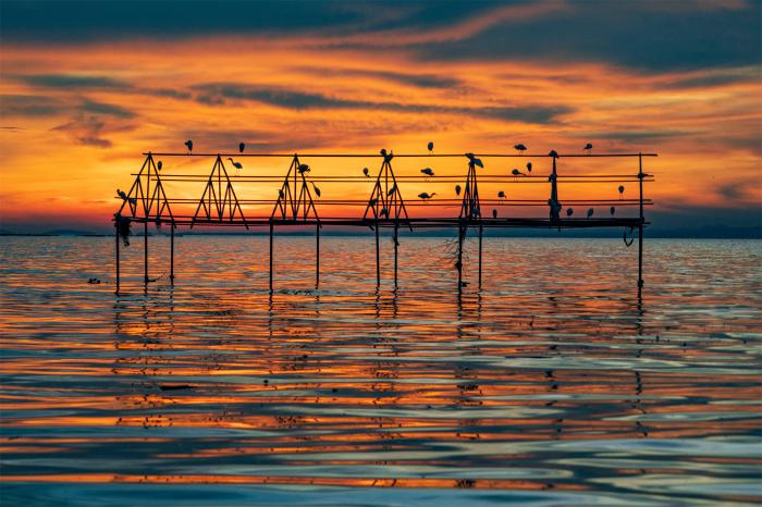 2月27日,在肯尼亚基苏木,鸟群在维多利亚湖上停歇。