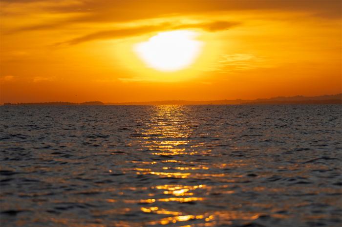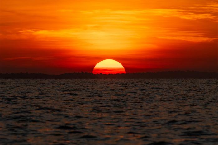 2月27日,在肯尼亚基苏木,渔民于日落时分驾船在维多利亚湖上捕鱼。