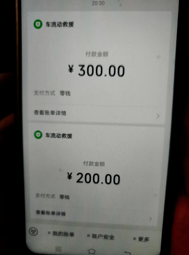 给“高速救援”转了500元,等了1小时还没人来