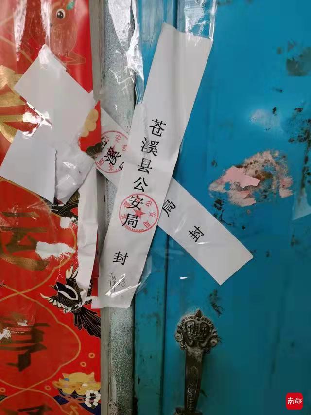 11月27日,南都记者发现其中一栋楼梯房8楼房门已被苍溪县公安局贴上封条,从房门外可看到家中有一台可用于直播的补光灯、一辆婴儿车和若干个行李箱。