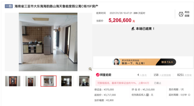 政知君注意到,该房屋已经于2021年1月26日在拍卖网拍卖成交。