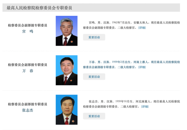 政知君注意到,目前,最高检共有三位副部级专职委员,除了宫鸣之外,还有万春和张志杰。