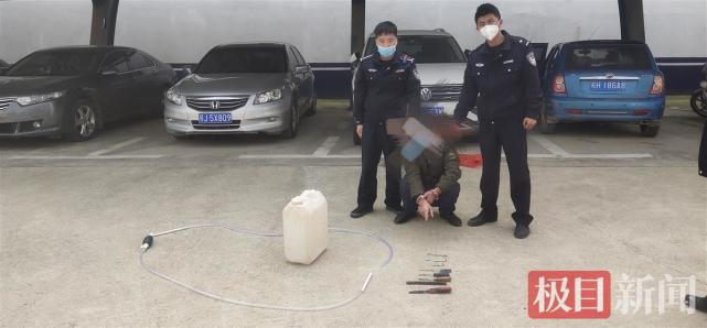 案件发生后,黄梅县公安局孔垄派出所高度重视,迅速组织民警成立专班对案件进行侦查。通过调取案发现场监控视频,民警发现作案的为一名男子,作案时驾驶一辆蓝色两厢小汽车,男子每次作案都是趁深夜货车司机熟睡之际,偷偷撬开油箱盖,然后将油箱内柴油分批次偷走。掌握情况后,民警围绕嫌疑人驾驶的车辆行驶轨迹进行追踪,发现该车辆每次作案后都前往新开镇。综合相关信息,并经过多个日夜的排查,民警成功锁定车辆所有人梅某的身份信息。随后,民警对梅某展开蹲守布控,并于3月28日将其成功抓获,并在家中搜查出5大桶,共900升柴油。