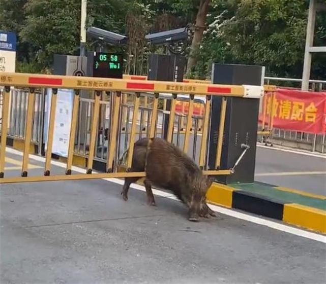 囧!江苏镇江一头野猪强闯小区,被卡在大门栅栏之间